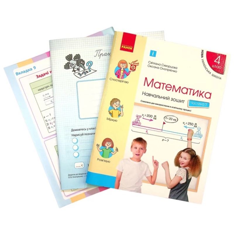 До комплексу входять: навчальний зошит у 4 частинах із додатком "Працюю самостійно" для самостійної роботи учнів, тематичні роботи для моніторингу навчальних досягнень, збірник завдань для формувального оцінювання, математичні матеріали для організації навчальних досліджень.