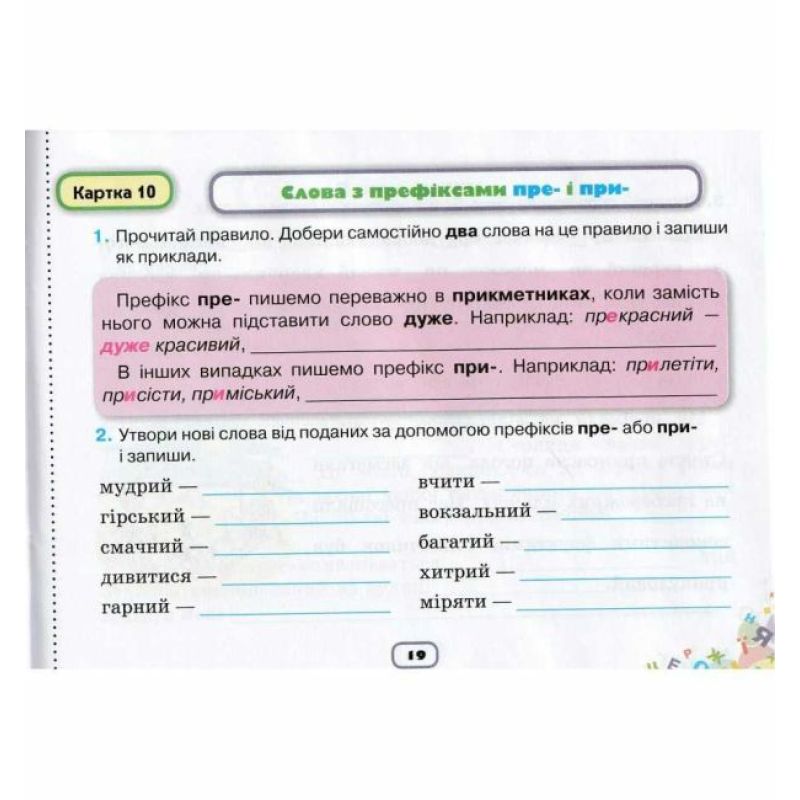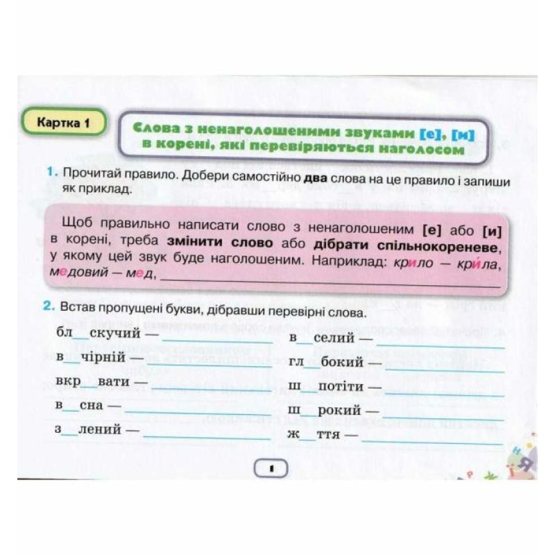 Уміщені в картках малюнки рекомендуємо використовувати для додаткового завдання, а саме — скласти за малюнком речення зі словом/словами надане правило.