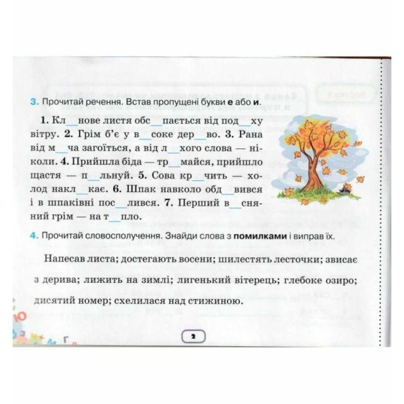 - у другому — читають словосполучення або речення і вставляють пропущені орфограми;
