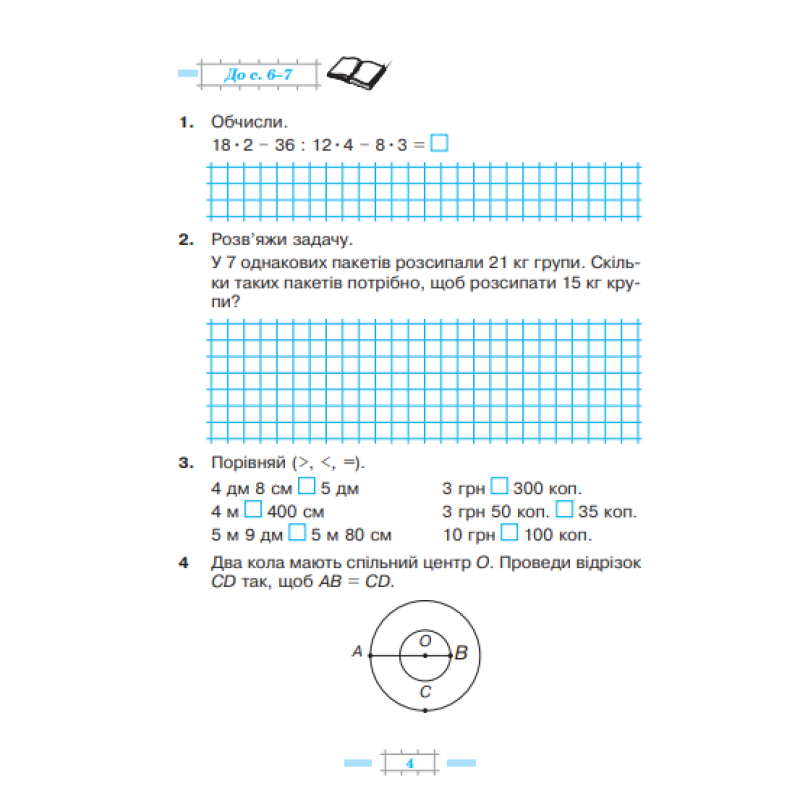 Пропонований зошит містить навчальний матеріал, який відповідає Державному стандарту початкової освіти, Типовій освітній програмі, розробленій під керівництвом О. Я. Савченко, та підручнику «Математика. 4 клас», у 2-х част. (авт. Будна Н. О., Беденко М. В.). Для учнів 4-го класу.