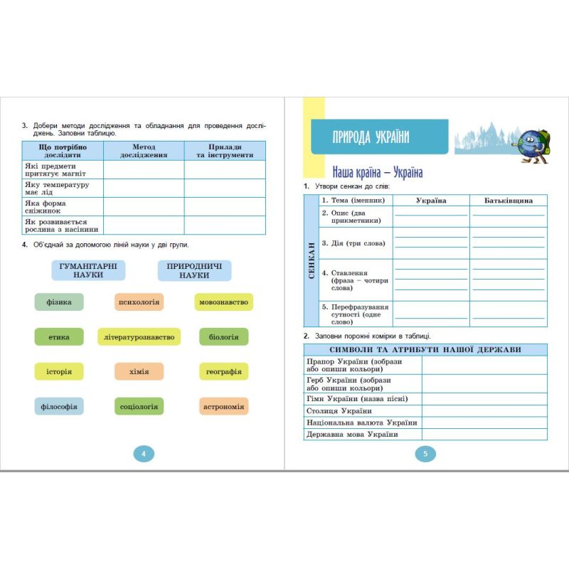 Цей зошит є невіддільною частиною навчально-методичного комплекту з інтегрованого курсу "Я досліджую світ" для 4-го класу і призначений для формування в учнів предметних і міжпредметних компетентностей, зокрема ціннісного ставлення до природи тощо. Завдання посібника дають можливість використовувати інтерактивні форми навчання: спостереження, експерименти, досліди тощо.