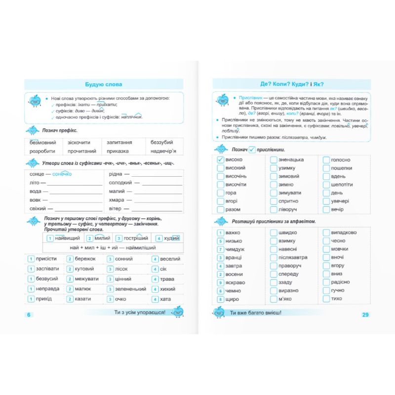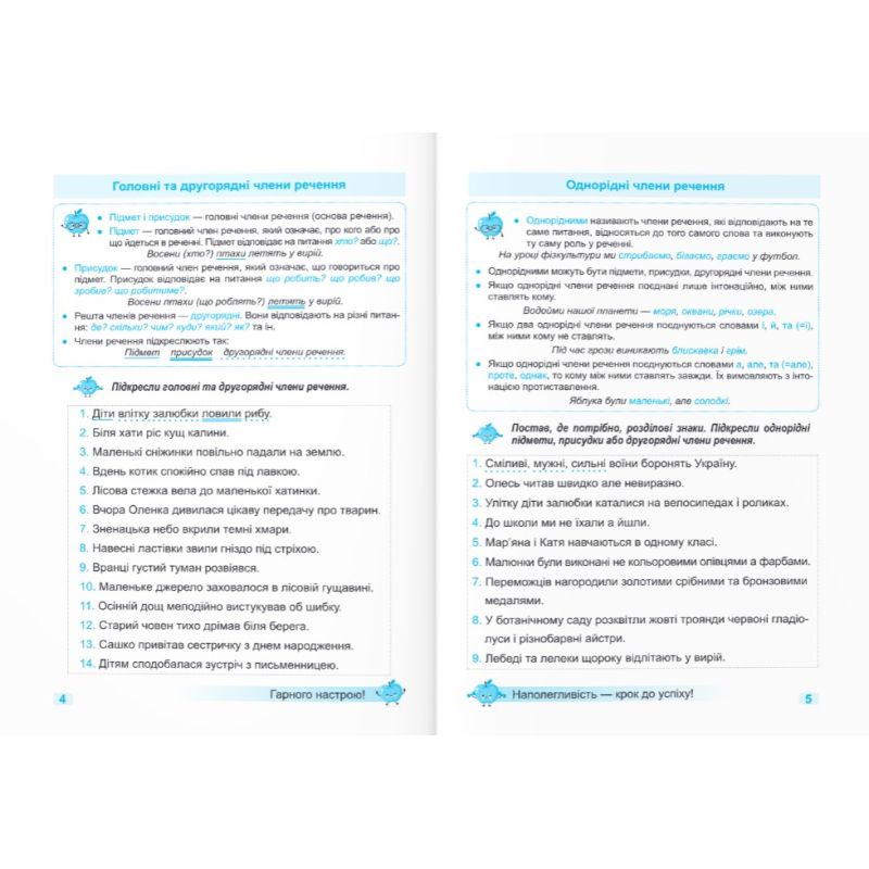 У навчальному посібнику дібрано бліцзавдання для формування в четвертокласників навичок грамотного письма. Ці завдання учитель може запропонувати як для виконання на уроці, так і для самостійної роботи вдома в умовах дистанційного навчання чи на канікулах.