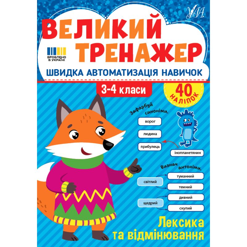 Цей тренажер допоможе дітям легко й ефективно опанувати знання про лексичне значення слова та сформувати навички швидкого й безпомилкового відмінювання слів. Автоматизація цих навичок значно прискорить і спростить роботу над різними розділами шкільної програми й полегшить подальше вивчення української мови. Для успішного відпрацювання цих тем у тренажері подані різноманітні завдання, а також мотивувальні наліпки, які дитина може використати як для самооцінки, так і для самоперевірки. Зошит буде корисним як додатковий матеріал на уроках чи як помічник для самостійної роботи вдома.