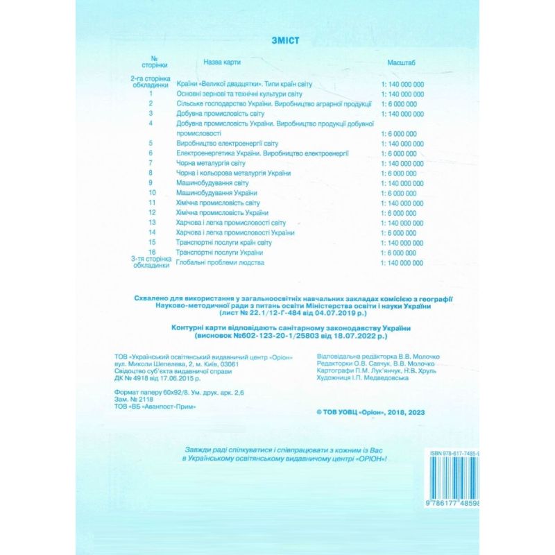 | Тип | Атлас+Контурні карти |