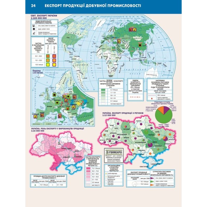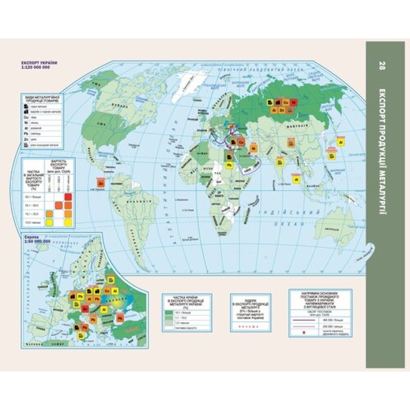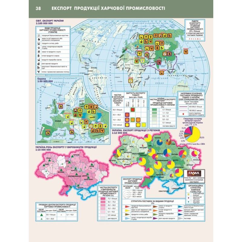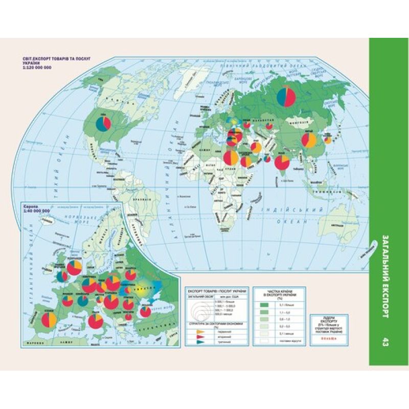 Усі карти світу та України в атласі мають єдину табличну легенду, що дає змогу порівнювати економічні показники без перерахунків чи іншого аналізу.