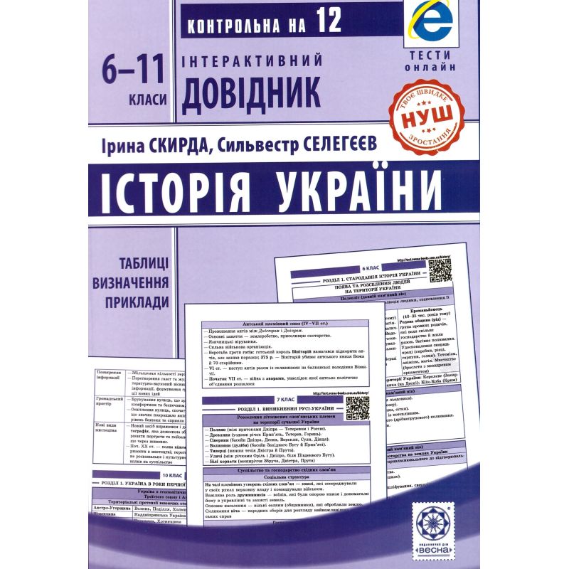 Посібник «Інтерактивний довідник. Історія України. 6—11 класи» допоможе учням систематизувати й поглибити знання з історії України. Усі відомості подано в доступній, стислій і наочній формі — у вигляді зручних таблиць.