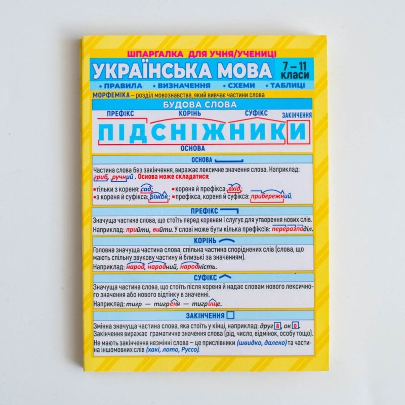 1. Новинка від Ранок. Наочні посібники шпаргалка з української мови для учнів 7-11 класів (з правилами, визначеннями, схемами, таблицями)