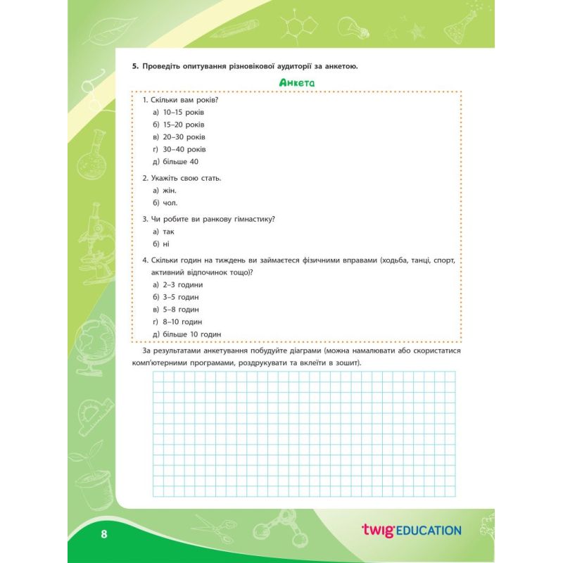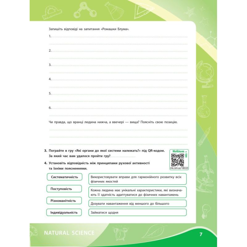 Відкриваймо для себе світ захопливої науки! Цей зошит стане вашим надійним помічником у дослідженні таємниць організму людини. У цьому посібнику ви знайдете креативні завдання, проєкти та експерименти, які допоможуть краще зрозуміти життєво важливі біологічні процеси, взаємозв’язки між органами та системами й важливість збереження здоров’я кожного й кожної з нас.