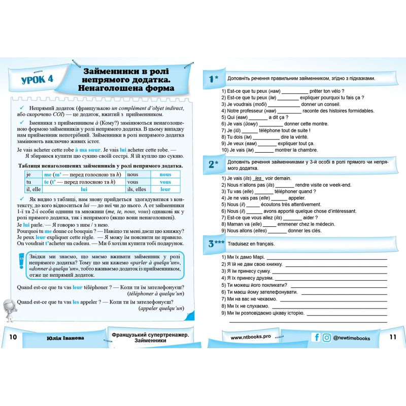 Здавалося б, ну що може бути простішим за тему «займенники»? Але тільки не у французькій мові! Адже тут ця тема одна з найскладніших у граматиці. Крім заплутаних правил щодо розташування займенників у реченні у залежності від особи і від типу речення, також існують займенники, що не мають відповідності в українській мові: on, en, y.